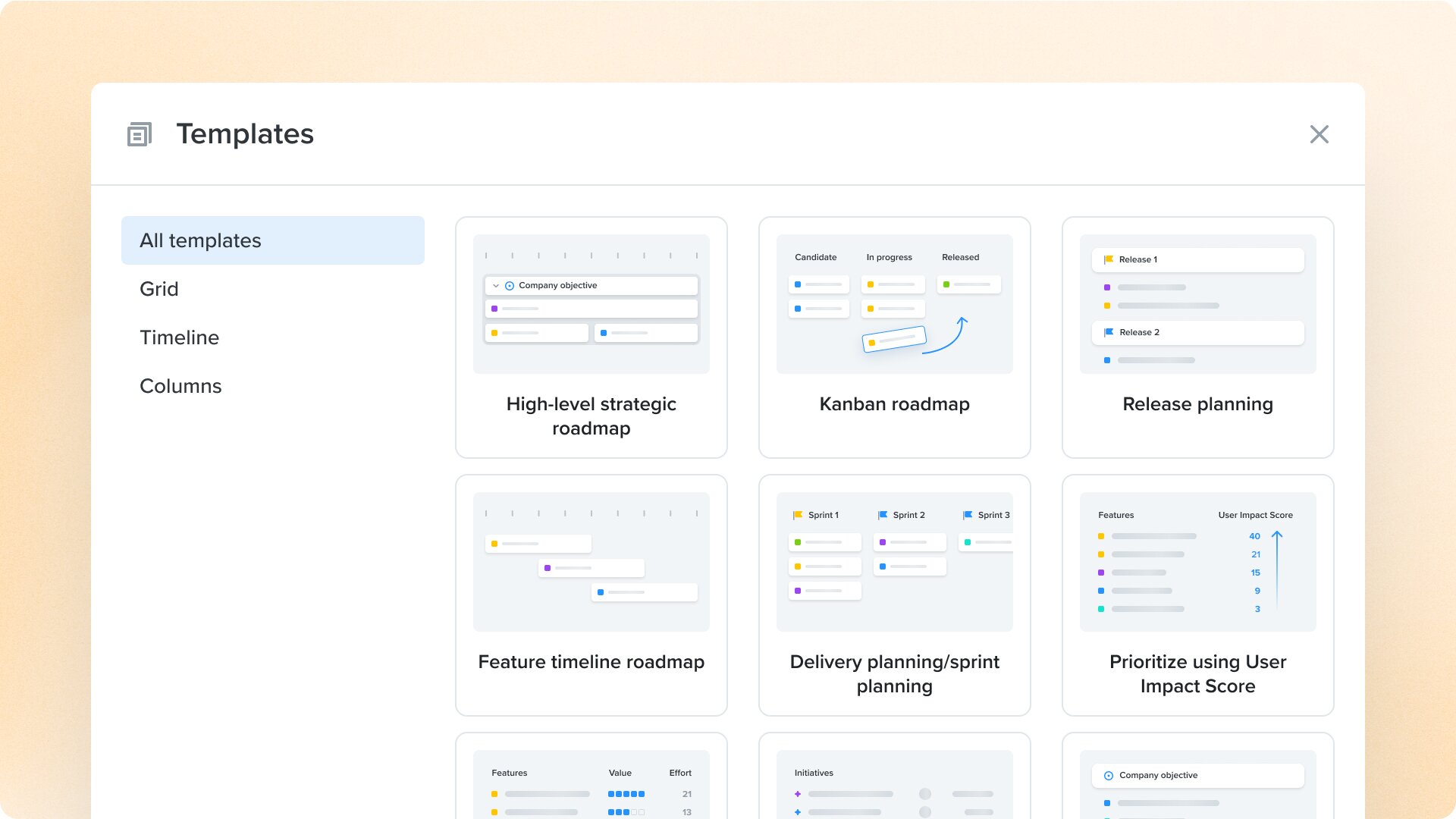 Pre-built board templates allow teams to quickly set up and focus on strategic work, reducing time spent on administrative tasks. These templates provide a head start for various planning and prioritization workflows.